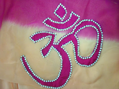 'Om' Symbol appliqued on a georgette fabric and outlined with crystals